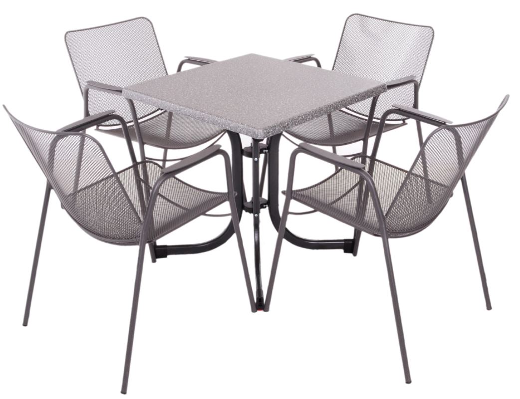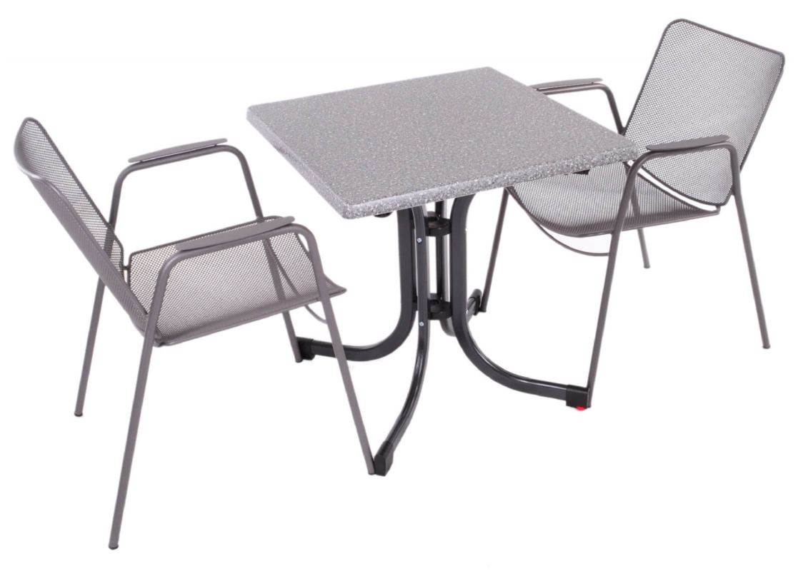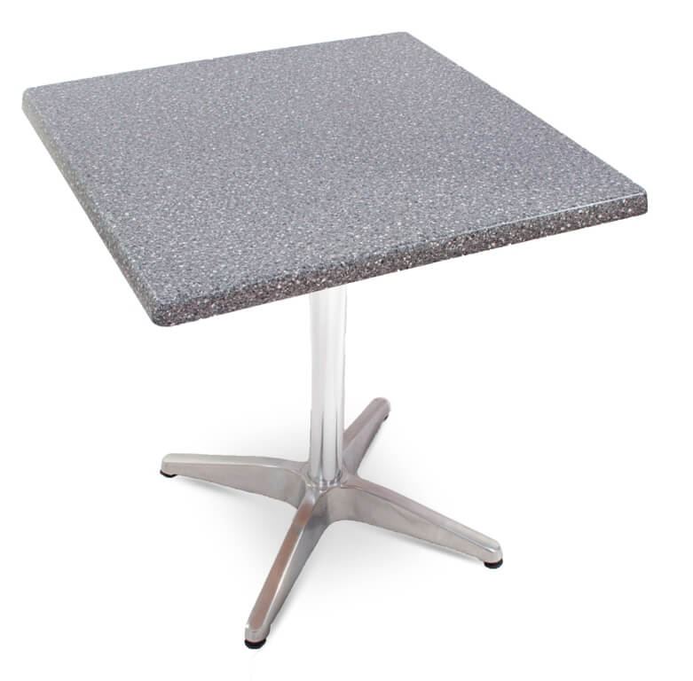 Praktyczny blat stołu o wymiarach 70x70. Ponadczasowy wzór granitu pasować będzie do wielu aranżacji.