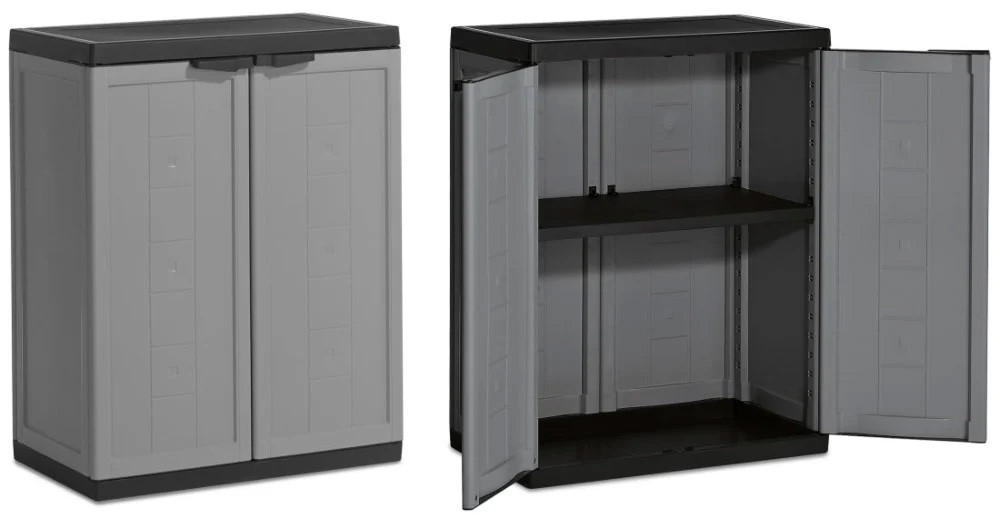 Szafka Jolly Low wyposażona jest w jedną półkę z możliwością łatwego zamontowania na wybranej wysokości. Gdy zajdzie potrzeba, w szybki sposób można ulokować półkę w innym miejscu. Po zamontowaniu i przesunięciu blokady bezpieczeństwa półkę stabilnie znajduje się na swoim miejscu. Szafa jest przystosowana do zamontowania kłódki. Otwory są dyskretne i nie rzucają się w oczy. Szafka jest niezwykle kompaktowa. Można ją z powodzeniem użytkować w warsztacie, w piwnicy, w łazience, na balkonie itp. Gdy się zabrudzi wystarczy użyć zwykłej ścierki z dodatkiem łagodnego detergentu. Na szerokiej półce możemy pomieścić aż 15 kg zawartości. Należy jednak pamiętać aby równomiernie rozłożyć obciążenie. Szafa nie zmienia kolorów pod wpływem promieniowania UV, jest wyjątkowo trwała. W całości wyprodukowana we Włoszech.