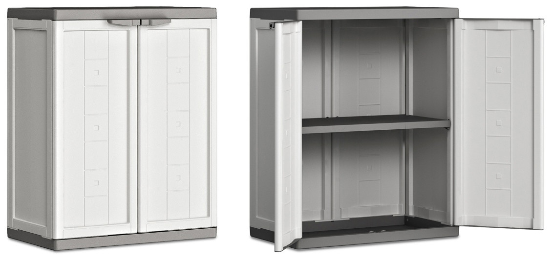 Szafa Jolly niska jasna jest produktem renomowanej firmy włoskiej, wykonana została z wysokiej jakości tworzywa sztucznego. Gwarantuje to długotrwałe i bezawaryjne użytkowanie. Kolorystyka mebla jest bardzo stonowana, dominującym kolorem jest kolor biały, jedynie rączki oraz dolny i górny element ma kolor jasnego popielu. Tak uniwersalne kolory pozwolą na umieszczenie jej wśród mebli łazienkowych w kolorach białych czy ecru. Oczywiście to nie dyskryminuje ich przed skomponowaniem szafy z meblami w kolorze ciemnym. Tak naprawdę dopasuje się wszędzie. Wykorzystać ją można w łazience, piwnicy, biurze, na działce, balkonie, dosłownie wszędzie. Dodatkową zaletą jest odporność na działanie promieniowania słonecznego, która gwarantuje niezmienność koloru mebla.