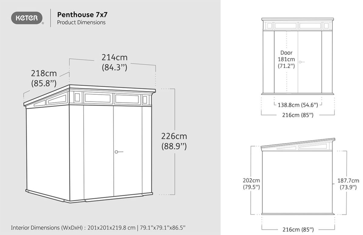 Dzięki całkowitej odporności na warunki atmosferyczne i stabilnej konstrukcji, domek Signature Penthouse 9x7 to inwestycja, która zapewnia długowieczność i niezawodność w każdych warunkach pogodowych. Jest to produkt, który z powodzeniem łączy w sobie estetykę, trwałość i funkcjonalność, podnosząc standard każdej przestrzeni ogrodowej, a jego bezproblemowe użytkowanie sprawia, że możesz cieszyć się pięknym ogrodem bez dodatkowych zmartwień.