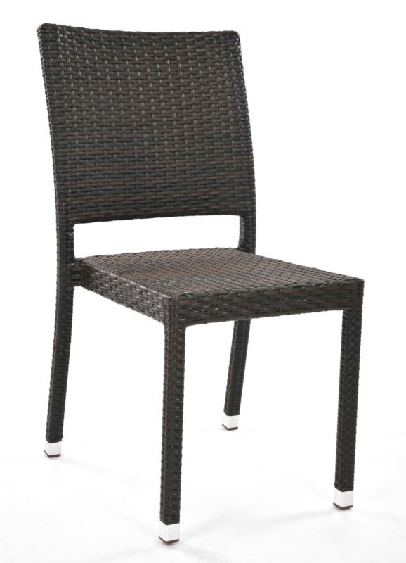 WIEN to krzesło z technorattanu w brązowych odcieniach. Krzesło zajmuje mniej miejsc, bo nie ma podłokietników. Jest jednak tak samo wygodne jak tradycyjne krzesło.