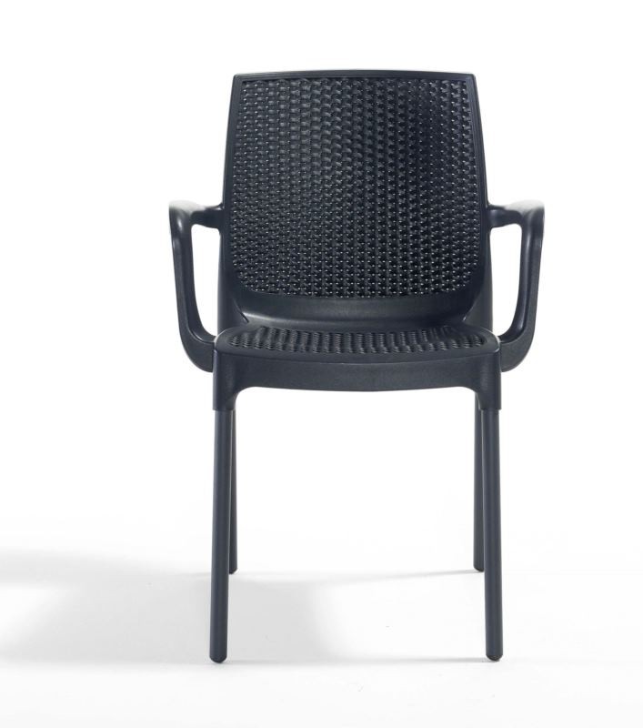 Struktura siedziska i oparcia przypomina plecionkę rattanową. Wygodne podłokietniki podnoszą komfort wypoczynku. Krzesło Sunset można doposażyć w poduszkę na siedzisko.