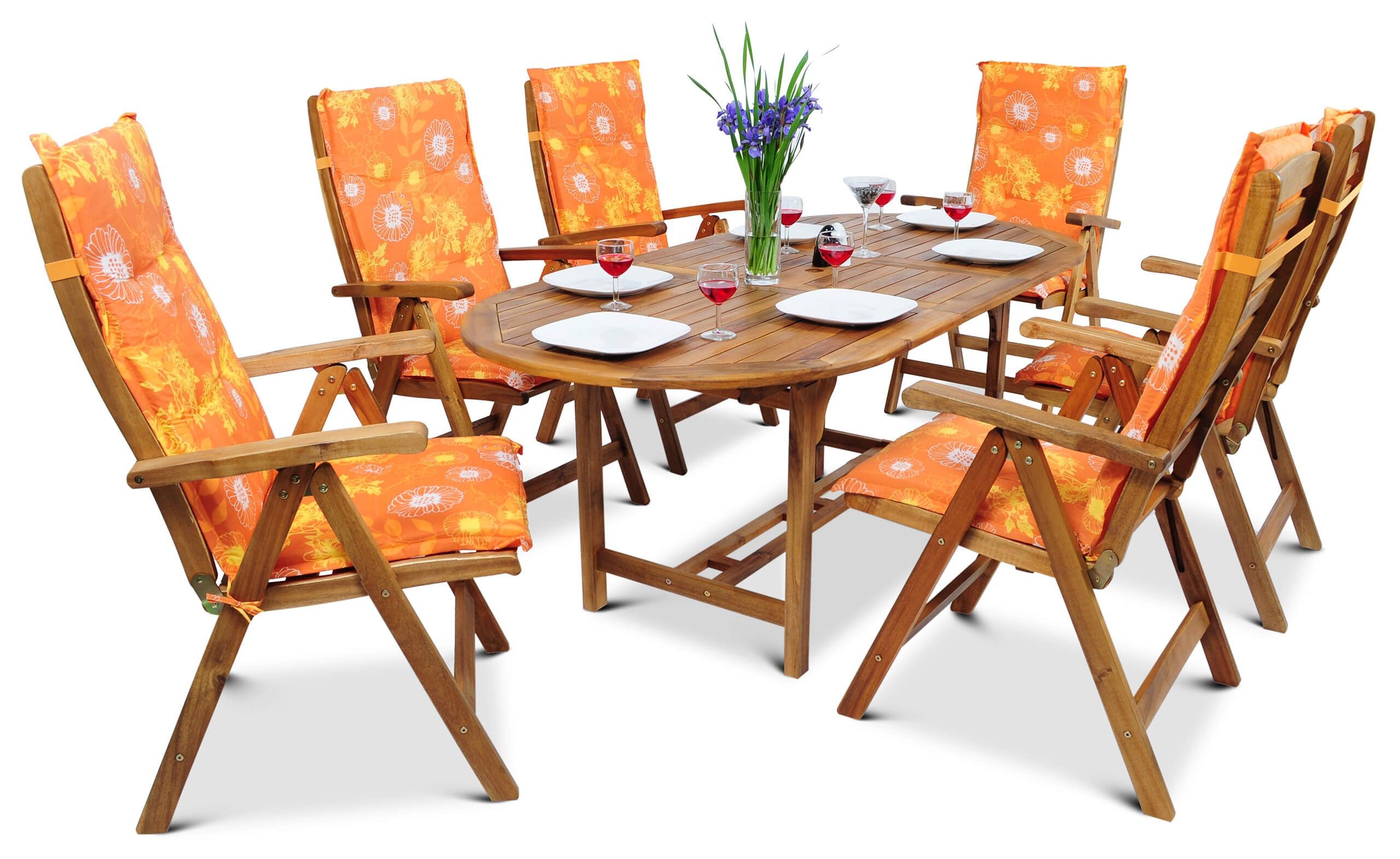 Poduszka o wymiarach 120x50 cm to standardowe wymiary poduszki na krzesło ogrodowe - zarówno sztaplowane jak i składane. Poduszk w zgięciu ma wszyte sznurki by przytwierdzić ją do krzesła, a w oparciu pas gumowy. Dodaliśmy pikowania i rant na szwie by uatrakcyjnić jej wygląd.