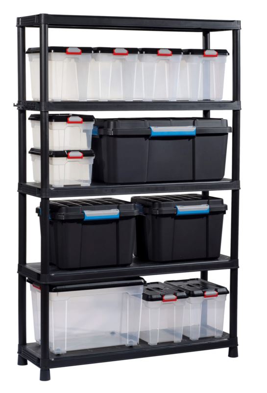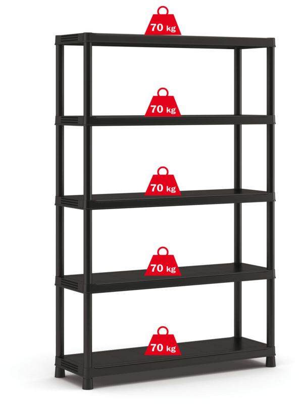 Jednym z największych atutów tego regału jest jego solidna konstrukcja, wykonana z najwyższej jakości tworzywa sztucznego. Każda z pięciu półek posiada imponujący udźwig do 70 kg, co pozwala na przechowywanie nawet cięższych przedmiotów bez obaw o stabilność. Co więcej, półki zostały dodatkowo wzmocnione metalowymi elementami, co nie tylko zwiększa ich wytrzymałość, ale również zapewnia bezpieczeństwo dla przechowywanych rzeczy. Dzięki temu możesz bez obaw umieścić na nich zarówno sprzęt warsztatowy, jak i zapasy spożywcze czy inne przedmioty codziennego użytku.