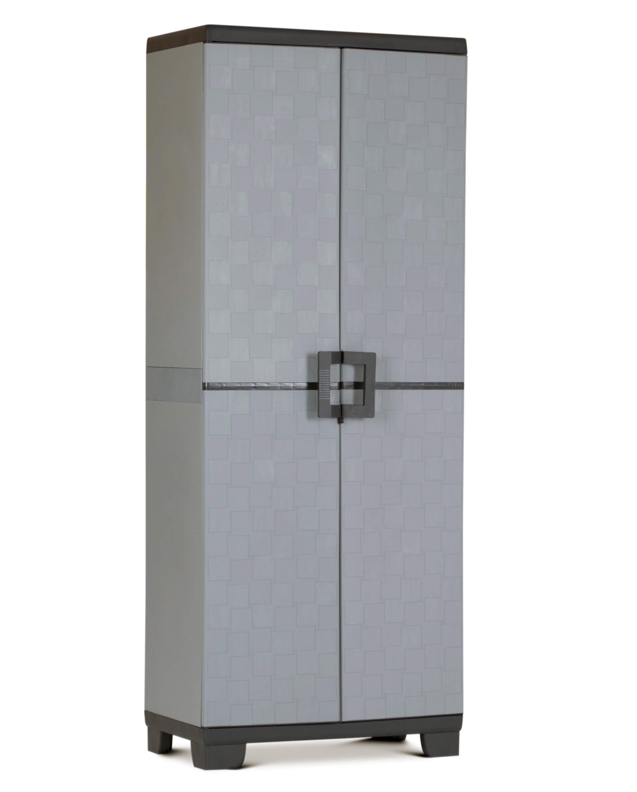 Praktyczna szafa z tworzywa sztucznego z trzema regulowanymi półkami. Lekka konstrukcja z maksymalnym obciążeniem 15kg na półkę. Możliwość regulowania półek oraz kompaktowe wymiary pozwolą dostosować ją do indywidualnych potrzeb.
